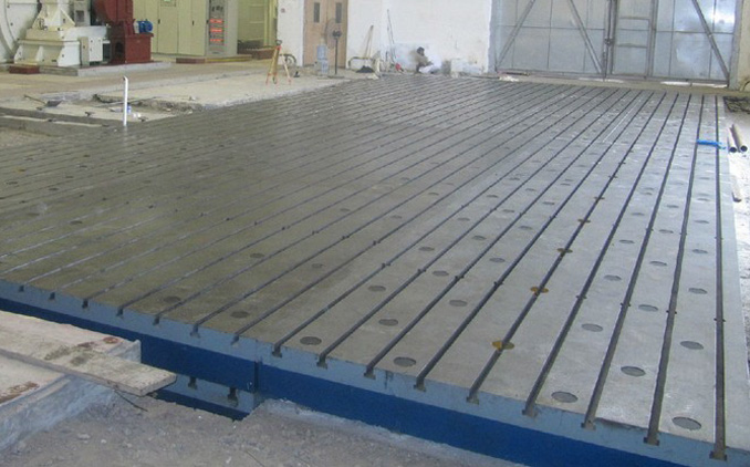 我公司為青島天藍化工廠(chǎng)設計制造的1500×3000mm焊接平臺8塊產(chǎn)品生產(chǎn)現場(chǎng),焊接平板(焊接平臺)用于鉚焊工藝的基礎平板,工作面上有孔和T型槽,孔主要用來(lái)清理鉚焊時(shí)的一些鐵渣和焊接廢棄物,T型槽主要是用來(lái)固定焊接件。當然,焊接平板也有用平面的,即無(wú)孔無(wú)槽。