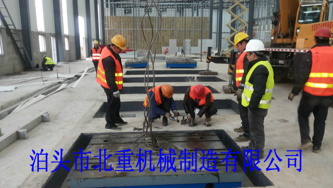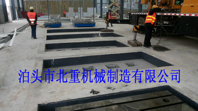 我公司為西門(mén)子電機制造的6件2500*4000電機試驗平臺安裝中.電機試驗平臺表面帶有T型槽,方便固定實(shí)驗設備.T型槽工作臺采用預埋的安裝形式,這樣的優(yōu)點(diǎn)是:1.不會(huì )出現平臺在實(shí)驗震動(dòng)下的位移.2.減小震動(dòng)輻射范圍.3.使試驗平臺的壽命和實(shí)驗效果大大提高.