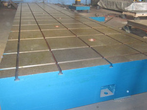 重型鑄鐵平臺按GB/4986-85的標準制造,產(chǎn)品制成筋板式和箱體式,工作有長(cháng)方形,材料HT200,工作面采用刮研工藝,工作面上可加V型、T型、U型槽和圓孔、長(cháng)孔等。平板是用于工件檢測或劃線(xiàn)的平面基準器具。平板安裝應調至水平、負荷均分布于各支點(diǎn)上,環(huán)境溫度(20±5℃)使用時(shí)應避免振動(dòng)。
